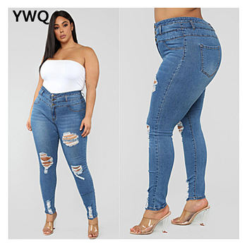 Plus Size High Waist Jeans Woman Skinny Ripped Large Size Jeans