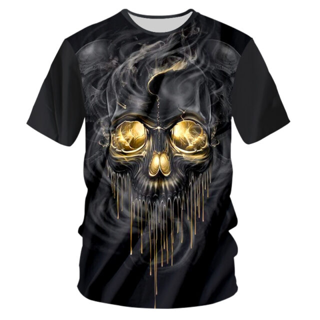 Men's Flame Skull Print T-Shirt