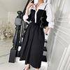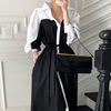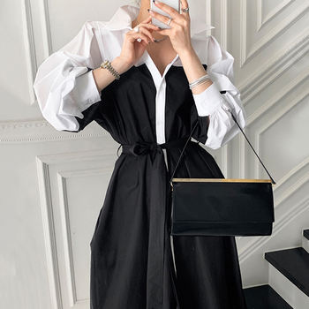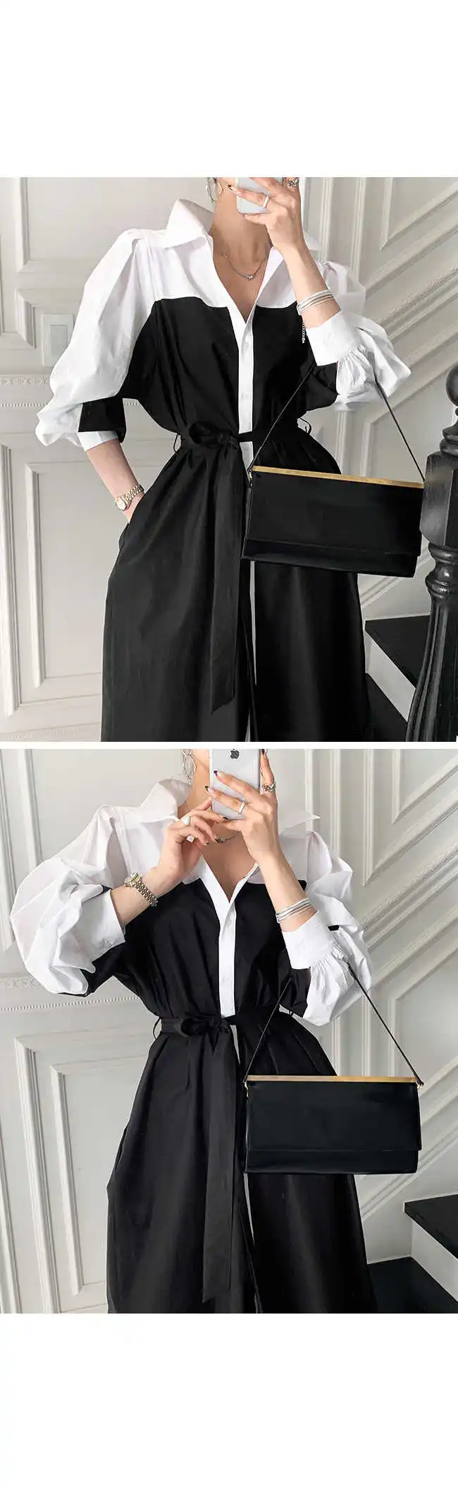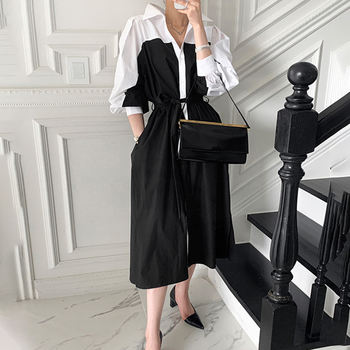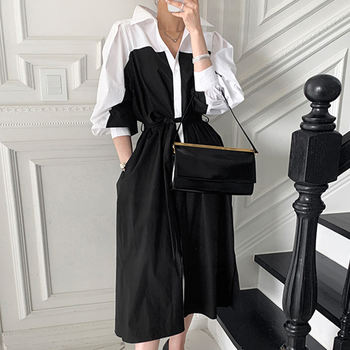 Dress shirt. At 172 below the knees, at a volume of 46-48 with a margin, but on the shoulder line-up to 46-48. With pockets. With Belt. A white bar along the entire product in front. Sleeves flounces-stand "stake" at the top of the shoulder.