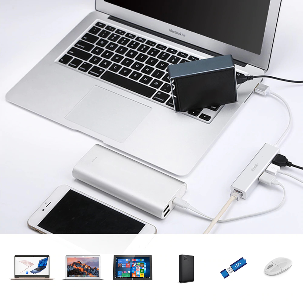 USB Hub with 3 Ports and Ethernet Connector