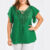This is the second blouse that I bought here, this time a green one. (See my other 5 star review here for a dark red blouse.) Very nice green, a tiny bit darker than on the photo. A-model. These blouses are very easy : wash, DO NOT SPIN, give it a good shake and let dry on a hanger or over the washing line. On a hot day it will be dry in no time. Very beautiful to wear on a long skirt. The breast contour is a bit smaller (130 cm) than what is mentioned by the store (133 cm). For me this is an advantage. The underside of the blouse has a contour of 158 cm. Delivery to Belgium was 8 days !!! Recommended seller.