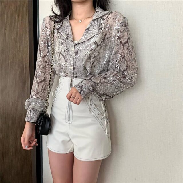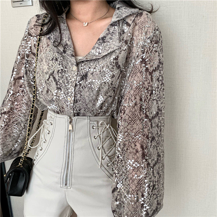 Women's Snake Printed Sequined Blouse